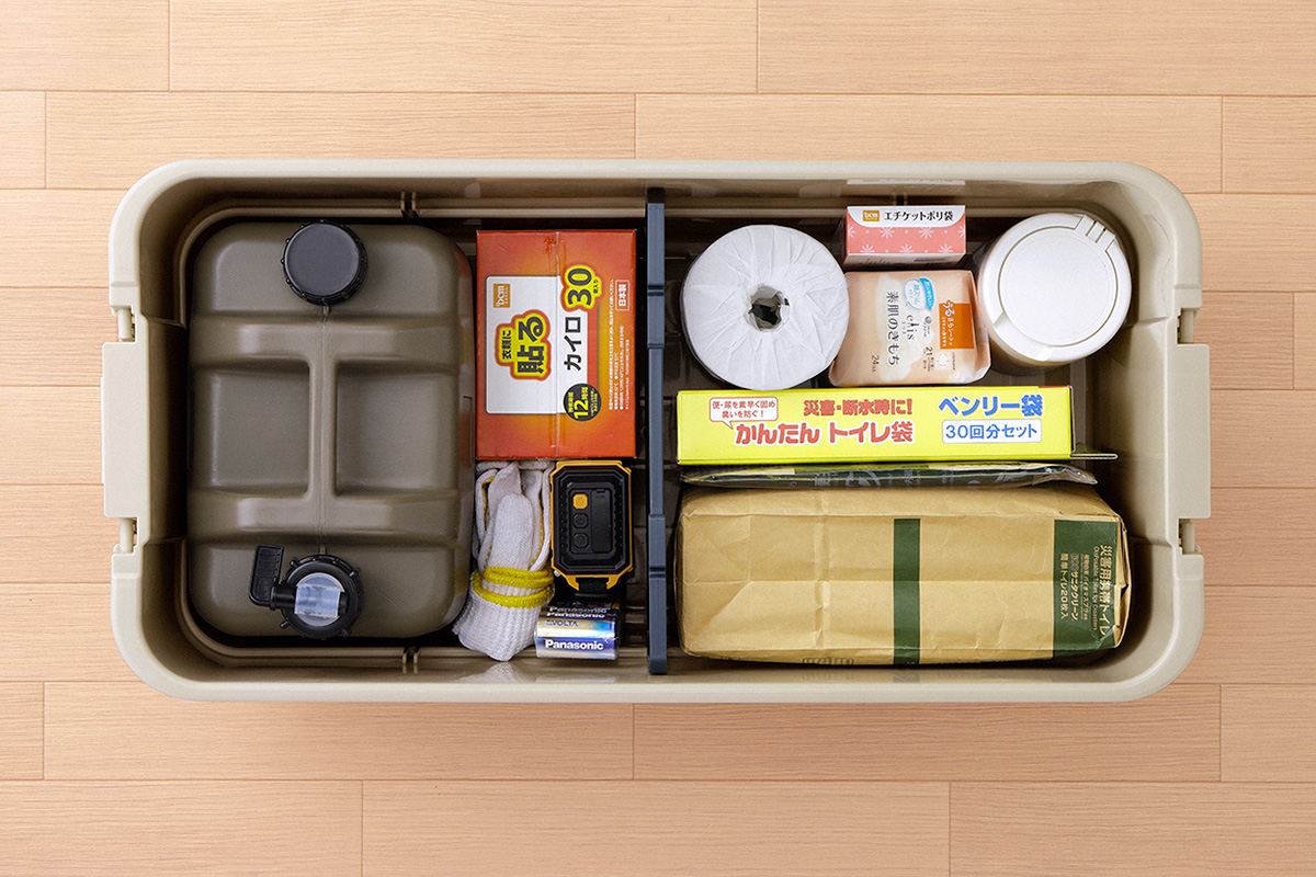 防災用品も用途別に分けて収納・管理することができます。