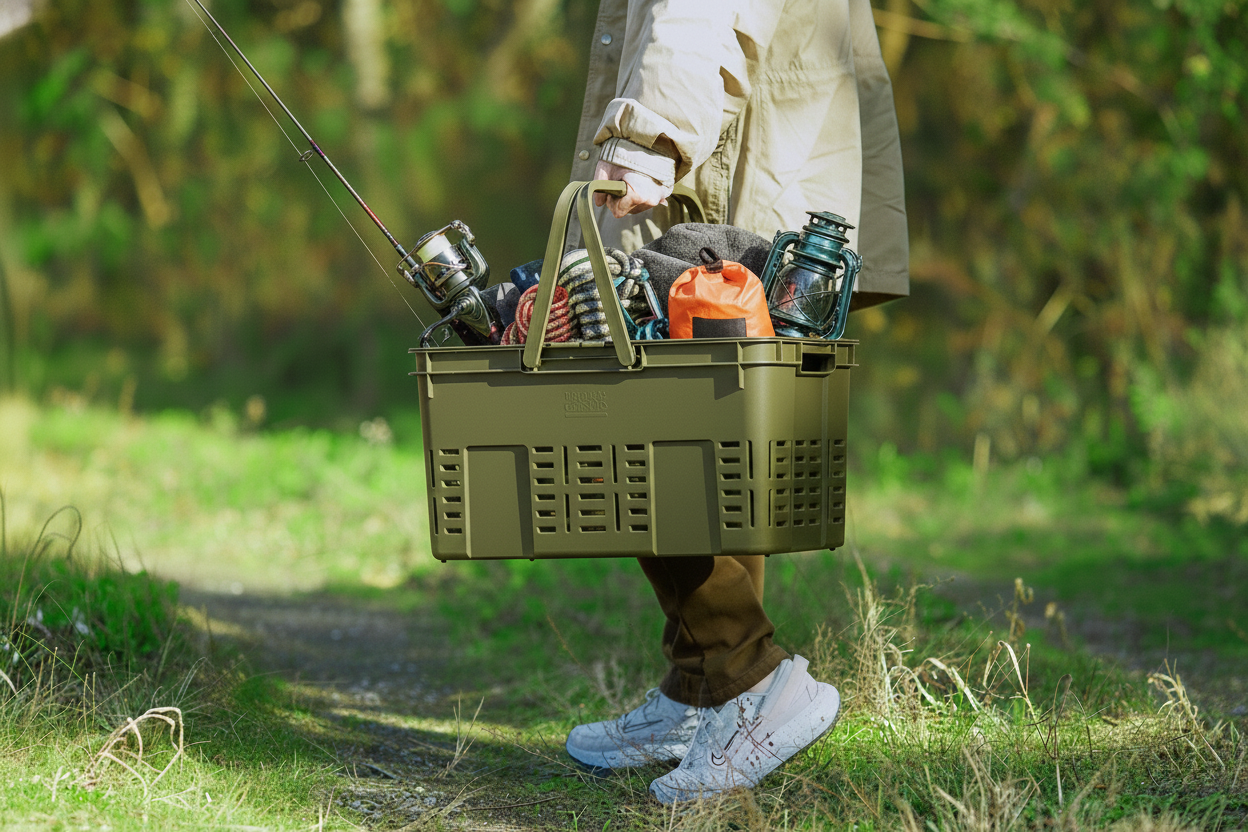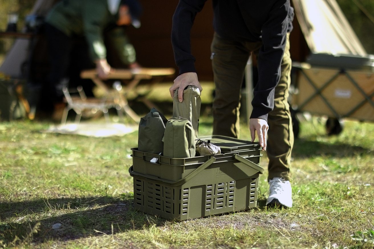 メッシュカーゴ36はツーハンドル方式を採用。片手で持ち運ぶことができるため、両手が塞がる心配がありません。食器等の汚れた道具や、ウェダーや長靴等の濡れた物などを洗い場まで持って運んだりなど、ちょっとした荷物の持ち運びにも役立ちます。