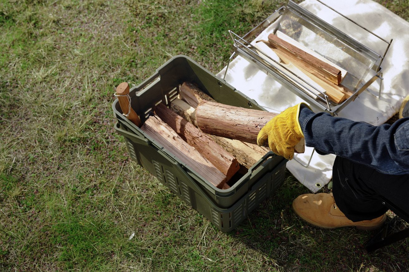 焚き火用の薪入れとして