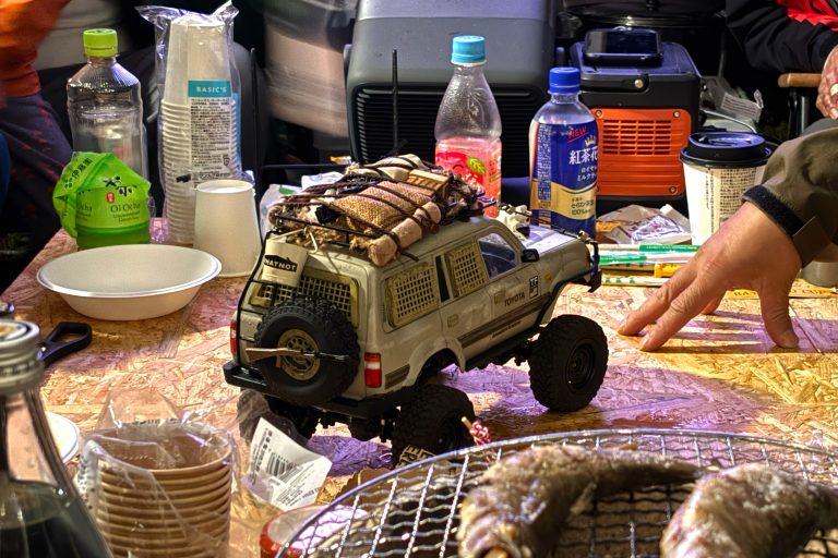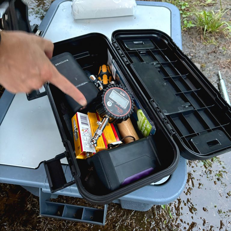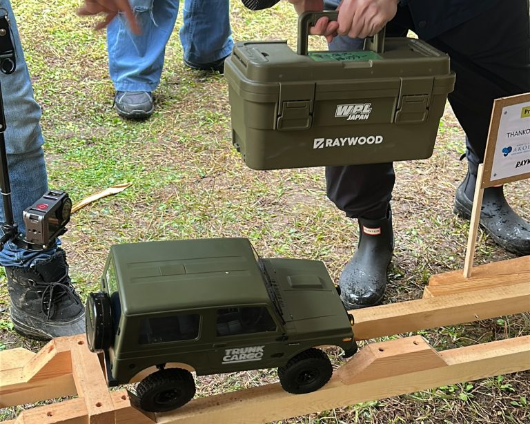 参加者の中にスタックカーゴを実際に使っている方がいたので実物を見せていただきました。「車のアクシデントに備えスパークプラグや空気圧計、簡易トイレキットや工具などと入れて車に常に積んでいます」と紹介してくれました。なぜスタックカーゴを使っているのかを聞いたところ、「見た目もカッコよく、工具や小型の部品や道具を入れておくのにちょうどいいサイズだったから」と語ってくれました。