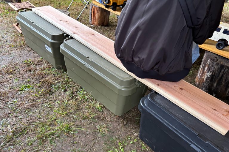 RAYWOODさんはTC-70Sを横一列に並べその上に板を設置。頑丈性を活用し、ベンチやテーブルとして利用してくれていました。