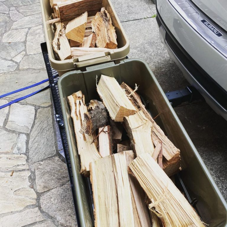 「工具、薪割り道具、キャンプ道具、薪などを入れるのに使ってますが、ある程度の大きさがあるので、ひとまとめにして車に積めるので便利です。あとはテーブルと椅子がわりになるので、食事をしたり、よくコーヒーを淹れたりしてます。」